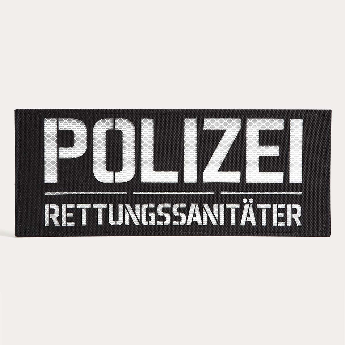 Schmücke Deine Einsatzweste – Damit auch jeder in der Dunkelheit erkennt, zu wem Du gehörst! Gefertigt aus CORDURA® 500 den und weißer Reflexfolie mittels Lasercut-Technik erscheint der Patch sehr flach und aufgeräumt. Das Set besteht aus dem großen „POLIZEI RETTUNGSSANITÄTER PATCH“ und dem kleinen „POLIZEI“ Patch.