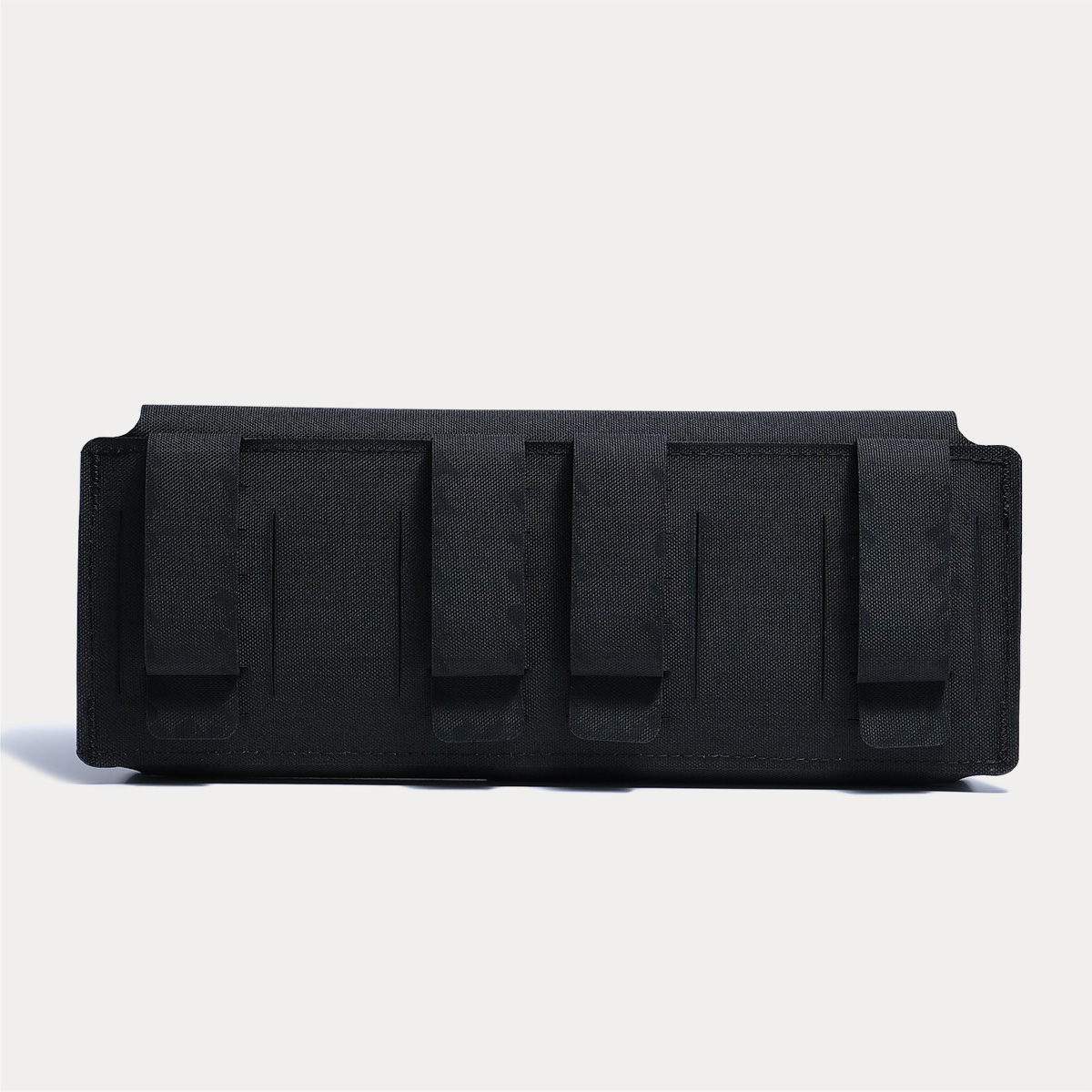- Eine große Flausch-Klettfläche auf der Pouch-Vorderseite, welche auf der Verschlusslasche fortgeführt wurde, ermöglicht das Anbringen von Patches o.Ä.